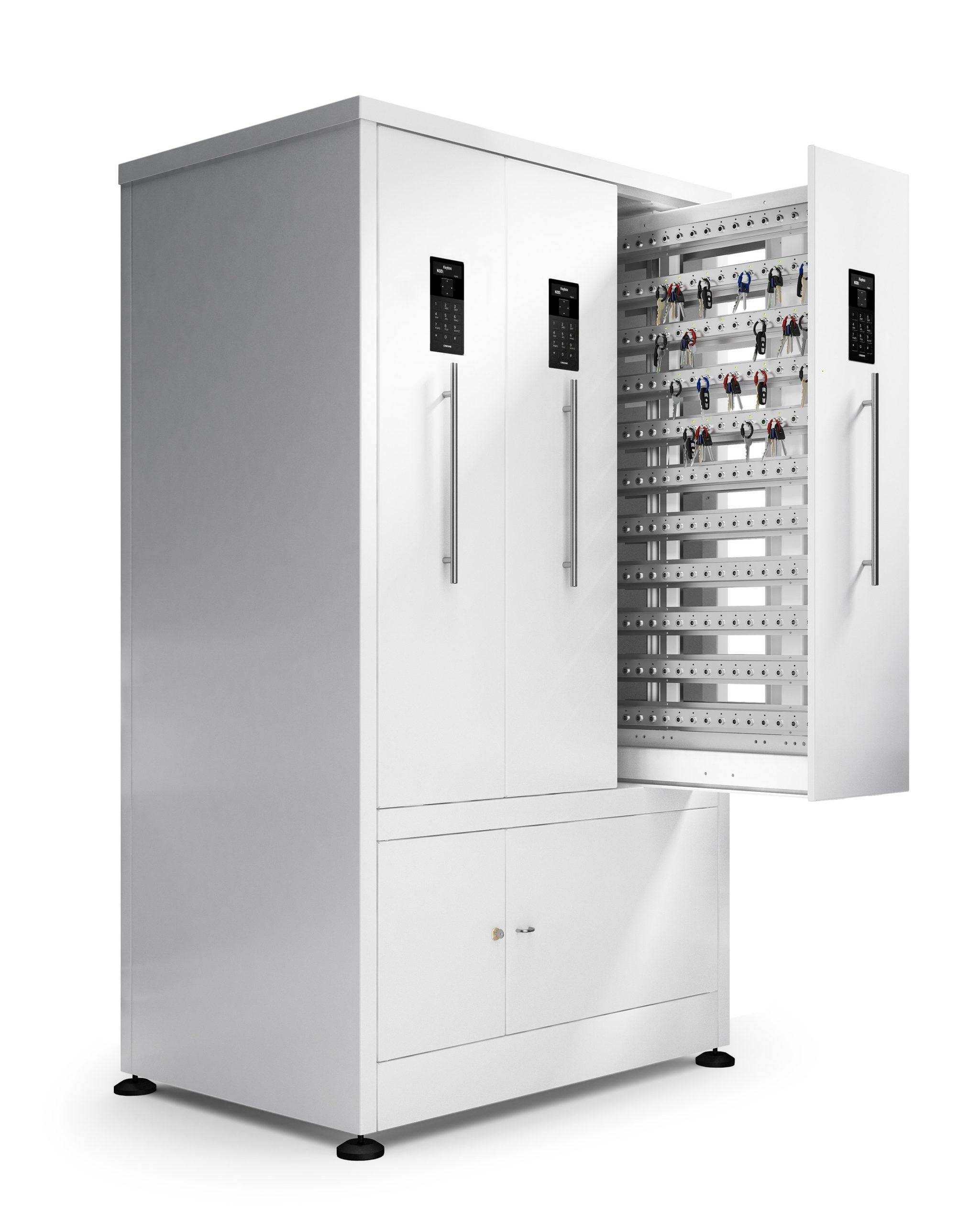 Intelligent floor-standing key cabinet with key identification to monitor and control each individual key. Holds a maximum of 924 key positions but can be equipped with fewer positions and expanded when business needs change.